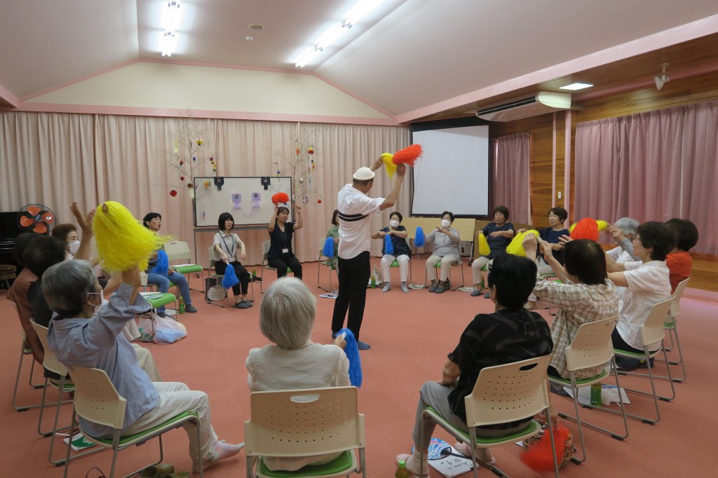 未分類 七夕まつりイベント 投稿者: okuno-ginta 投稿日: 2025年7月11日 7月7日(月)午前10時から多目的ホールにて開催 今回は和田山町にお住いの山下昇さんにお越しいただき 昔懐かしい歌を皆で唄って血管若返り体操やオモシロイ踊り 脳トレ等をして頭も体もホッカホカの「健康・体操」を 行いました。 22名の参加者の皆さんも一緒に唄ったり体を動かして楽しいひと時を過ごしました。 関連